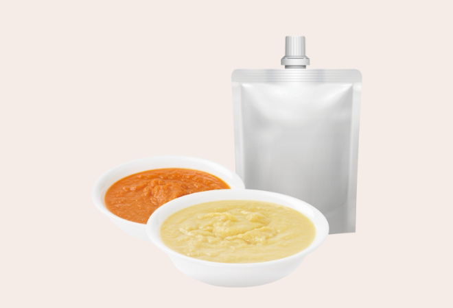 流動食は、噛まなくても飲み込める、あるいは経管で投与できる流動性のある食品です。 その中でも、通常の食事がとれない方が栄養補給を目的として使用する流動食を一般的に「濃厚流動食」といい、少量で高エネルギーかつバランスのよい栄養が取れるように設計されています。