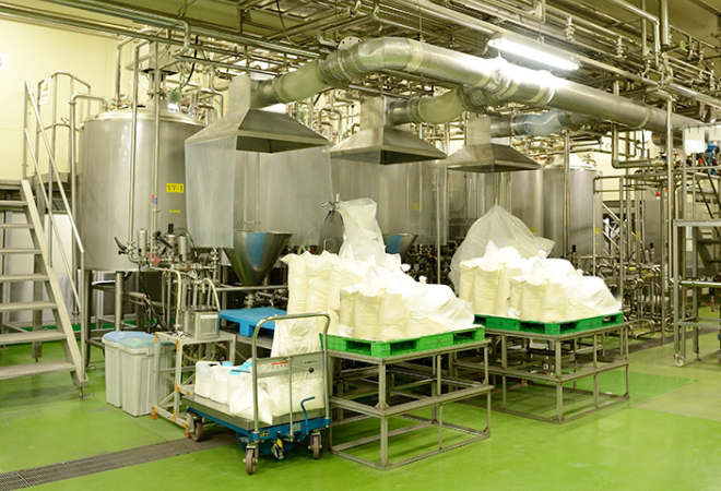 ※CIP洗浄(Cleaning in Place:定置洗浄) とは、衛生的な製造設備を維持するために、分解せずに装置の内部を洗浄剤などで自動的に洗浄するシステムのことです。製造終了後または品種切替時に実施しています。